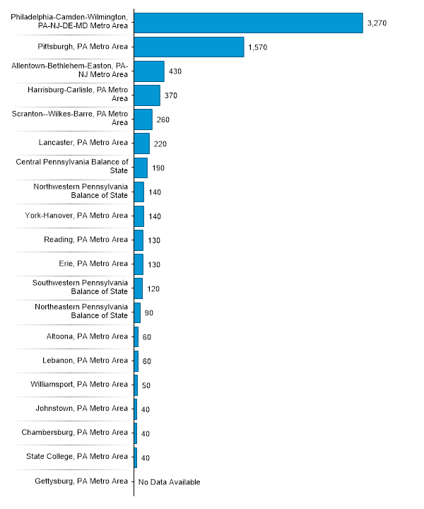 Current Employment for Healthcare Social Workers in PENNSYLVANIA