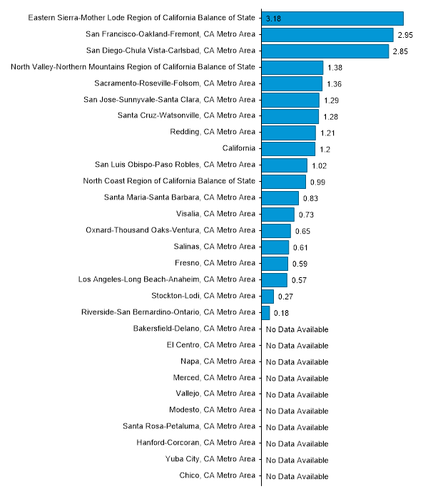 Employment Concentration of Biological Technicians in California