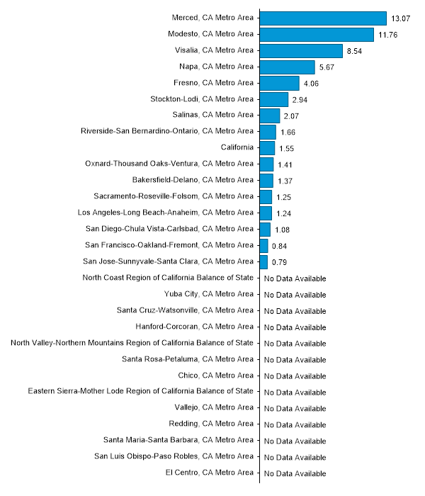 Employment Concentration of Cleaning, Washing, and Metal Pickling Equipment Operators and Tenders in California