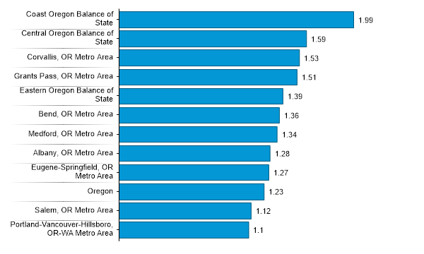 Employment Concentration of Food Preparation Workers in Oregon