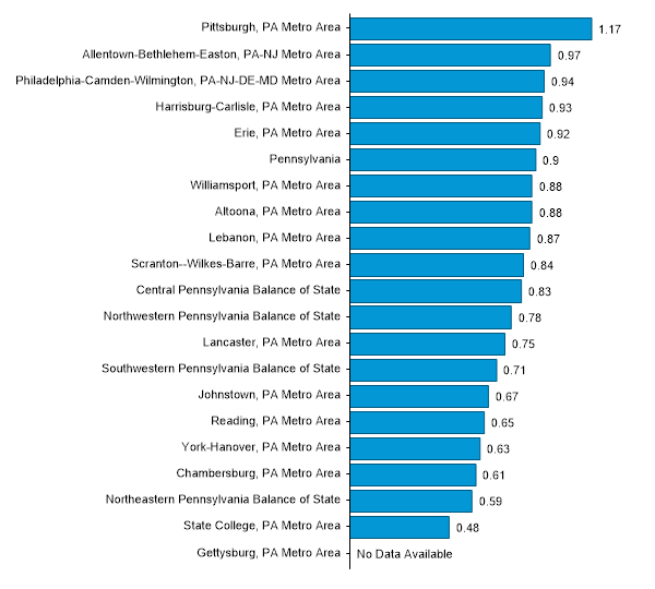 Employment Concentration of Healthcare Social Workers in Pennsylvania