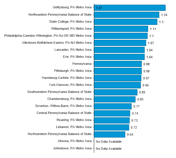 Employment Concentration of Hosts and Hostesses, Restaurant, Lounge, and Coffee Shop in Pennsylvania