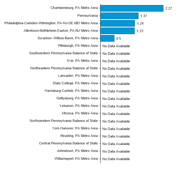 Employment Concentration of Tree Trimmers and Pruners in Pennsylvania