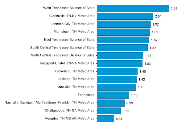 Employment Concentration of Water and Wastewater Treatment Plant and System Operators in Tennessee