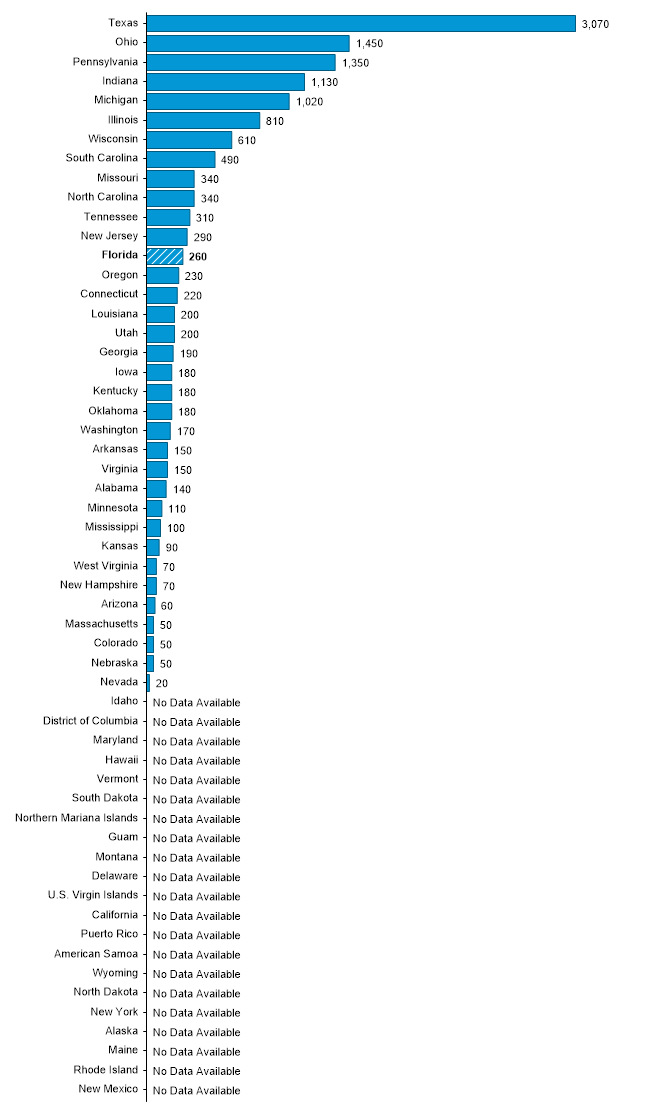 Projected 2032 Employment for Heat Treating Equipment Setters, Operators, and Tenders, Metal and Plastic in FLORIDA