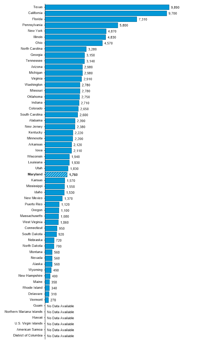 Projected 2032 Employment for Water and Wastewater Treatment Plant and System Operators in MARYLAND