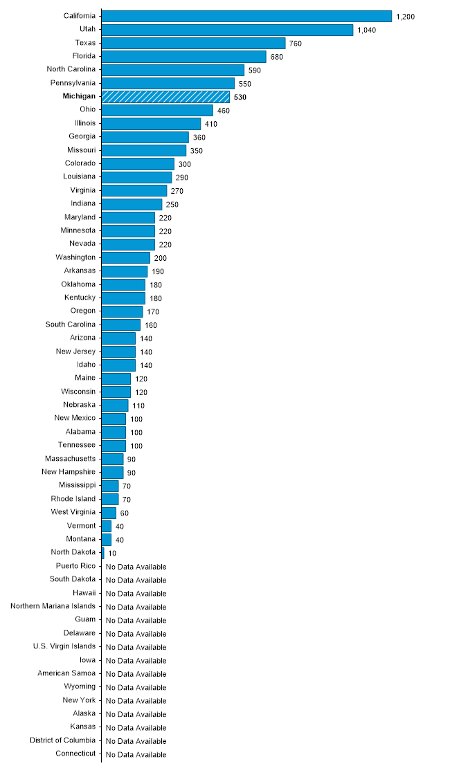 Projected 2032 Employment for Orthotists and Prosthetists in MICHIGAN