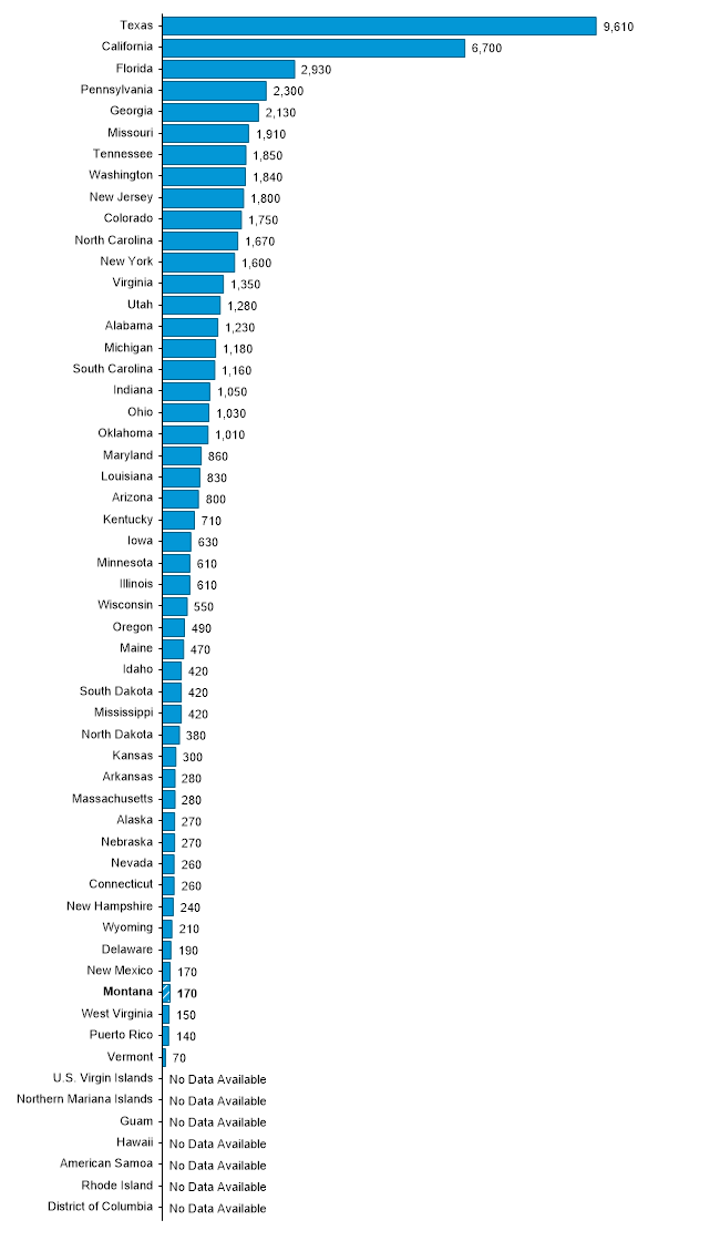 Projected 2032 Employment for Electrical and Electronics Repairers, Commercial and Industrial Equipment in MONTANA