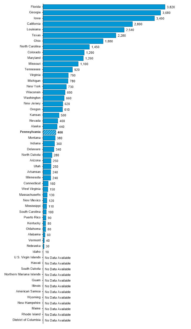 Projected 2032 Employment for Segmental Pavers in PENNSYLVANIA